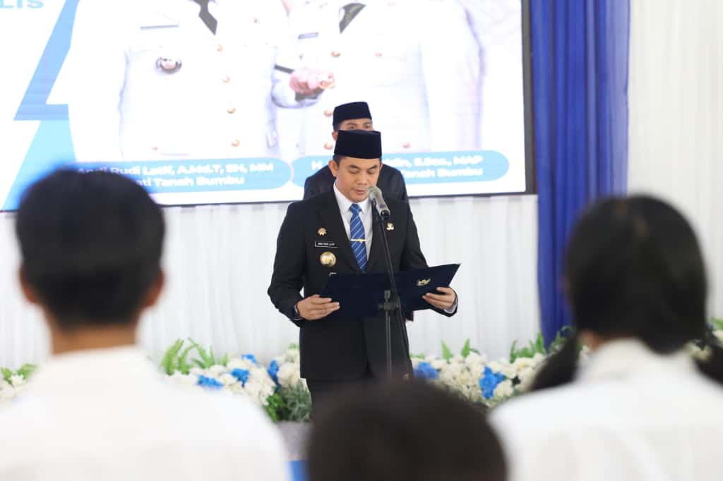 BATULICIN, faktakalsel.com – Bupati Tanah Bumbu, Andi Rudi Latif ambil sumpah dan serahkan secara simbolis Surat Keputusan (SK) Pengangkatan Pegawai Pemerintah dengan Perjanjian Kerja (PPPK) Tahap II, sekaligus SK Pengangkatan PPPK Paruh Waktu di Lingkungan Pemerintah Kabupaten Tanah Bumbu Tahun 2025. Acara berlangsung di Pendopo Kantor Bupati, Batulicin, Senin (20/10/2025).